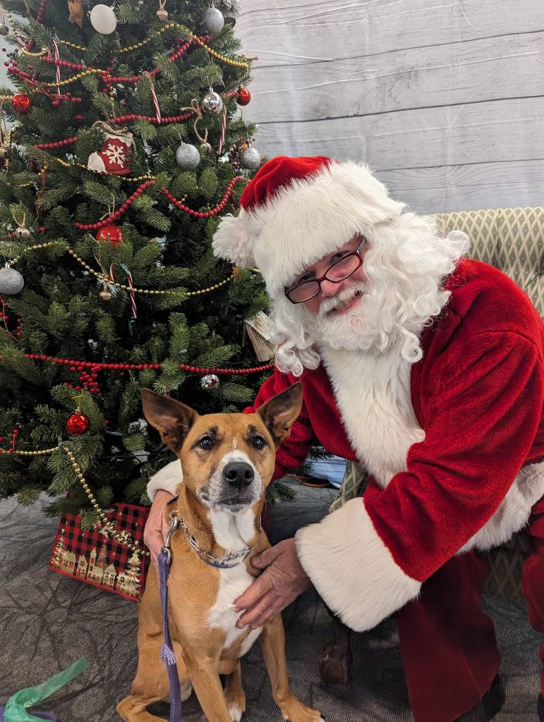 - Yesterday we took our darling doggo to see Santa and after several attempts we got the cutest picture.