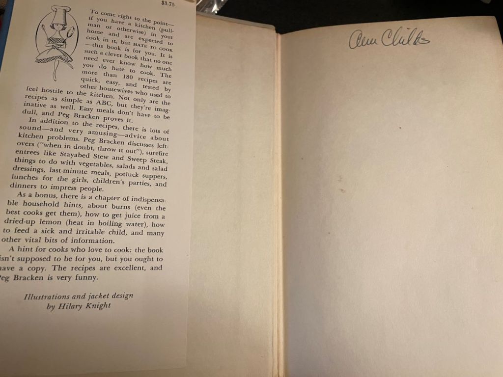 Here’s a link to a web site that includes some recipes from the original book: The I Hate To Cook Book 1960. “Peg Bracken’s witty cookbook offered relief to women who “hate to cook but have to.” It didn’t promise to turn reluctant cooks into gourmet chefs. Instead, this 1960s culinary icon was filled with down-to-earth, easy to make foods, kid friendly dishes and ideas for using leftovers.”