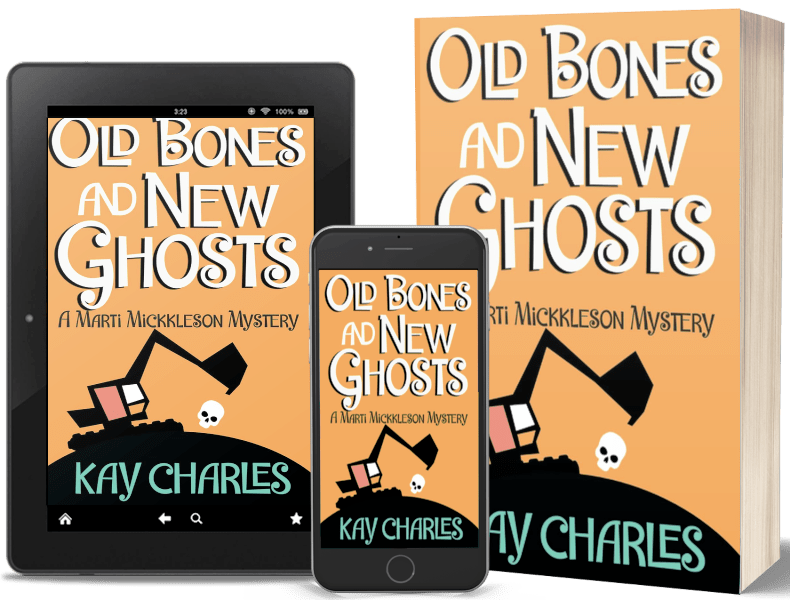 While Old Bones and New Ghosts by Kay Charles is book two in the Marti Mickkleson Mysteries, it reads perfectly as a standalone cozy mystery. (Although I’ll admit that I just downloaded book one onto my kindle because I enjoyed this so much).