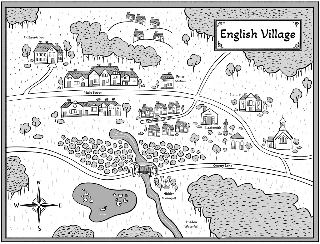 This book works well as a standalone for readers new to Josie’s series, but I encourage you to go ahead and download book one. As soon as I finished book one, I knew I needed to start at the beginning to hear about Josie’s first brushes with mysteries in English Village (see map of village below).