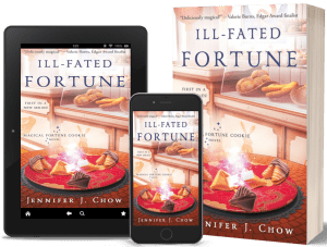 Jennifer J. Chow writes cozies filled with hope and heritage. She is an Agatha, Anthony, and Lefty Award-nominated author. Her newest series is the Magical Fortune Cookie mysteries; the first book is Ill-Fated Fortune. Jennifer’s previous series is the L.A. Night Market Mysteries. Death by Bubble Tea was reviewed by the New York Times, featured in Woman’s World, and hit the SoCal Indie Bestseller List. Jennifer currently serves as Immediate Past President on the board of Sisters in Crime and blogs at chicksonthecase.com. She is an active member of Crime Writers of Color and Mystery Writers of America. Connect with her online and sign up for her newsletter at JenniferJChow.com.