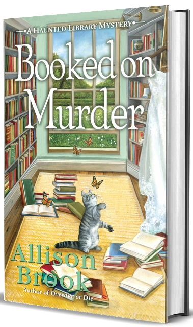Librarian Carrie Singleton must catch a killer before she can say “I do” in the 8th delightful installment in Agatha Award-nominee Allison Brook’s Haunted Library mystery series.