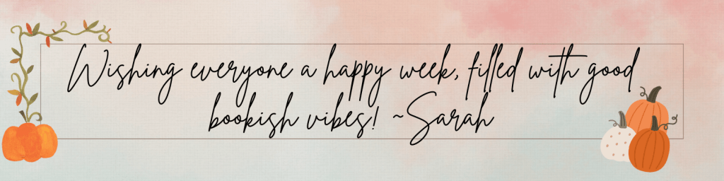 Well, it was still pretty warm for much of the week, but looking ahead at the coming days, the forecast looks very Fall-like. I can’t wait. It was a wonderful reading week, and we saw The Mousetrap at our high school. It was so well done. I had never seen it before. Yesterday my husband and I celebrated 22 years of marriage.