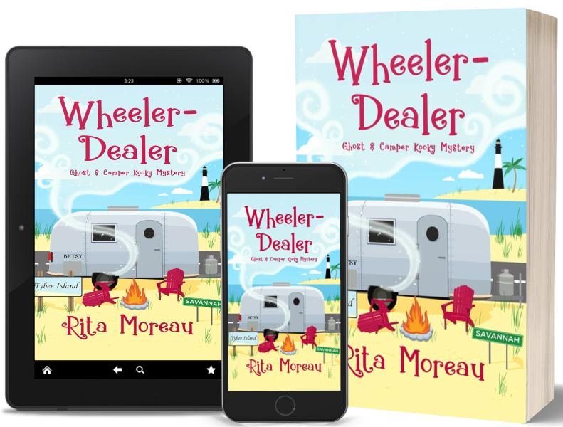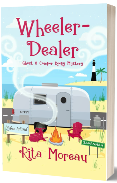 Welcome to my stop on the Great Escapes Virtual Book Tour for Wheeler-Dealer – A Ghost & Camper Kooky Mystery by Rita Moreau! Today we are featuring a review of the high-spirited first book in the hilarious Ghost & the Camper kooky mystery series. If you like golden-girl sleuths, zany characters, and sardonic humor, then you’ll love Rita Moreau’s witty whodunit.
