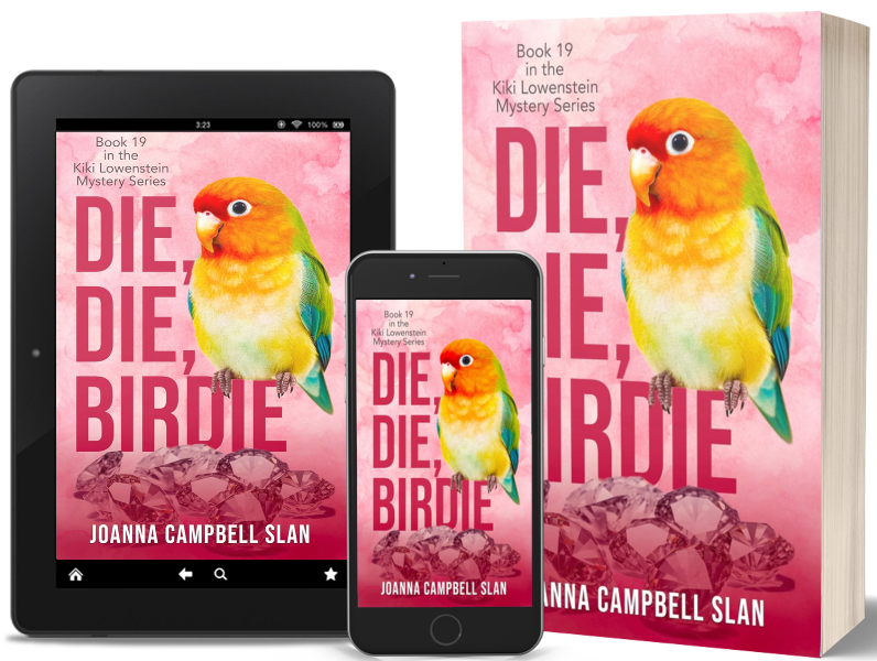 Welcome to my stop on the Great Escapes Virtual Book Tour for Die Die Birdie (Kiki Lowenstein Mystery Series) by Joanna Campbell Slan! Today we are featuring a review of the 19th entry into this popular series. Stop by each blog on the tour for interviews, guest posts, spotlights, reviews, and more! There is also a King Sumo Giveaway for this tour. Prize – $25 Amazon Gift Card!