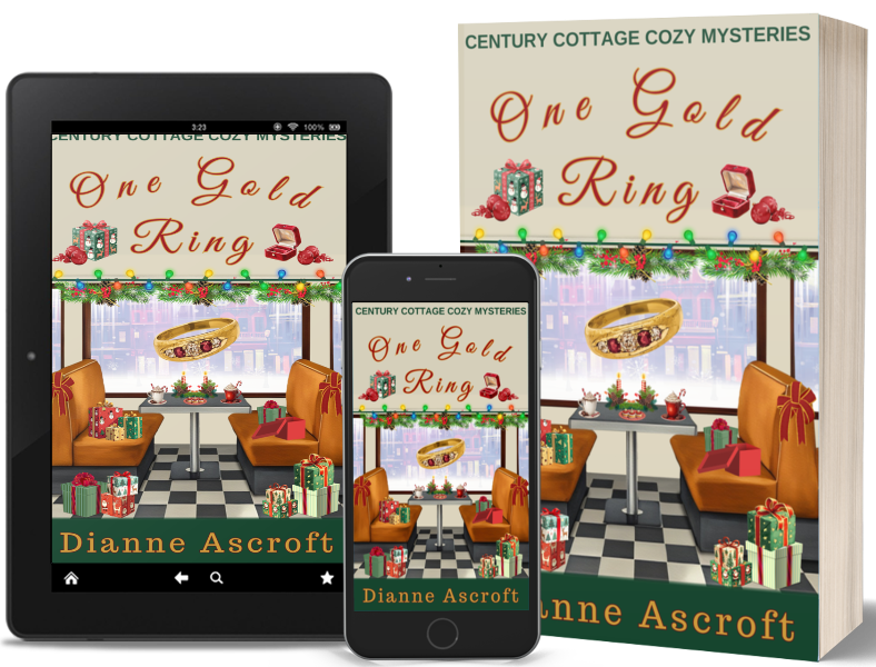 Welcome to my stop on the Great Escapes Virtual Book Tour for One Gold Ring (Century Cottage Cozy Mysteries) by Dianne Ascroft! Today we are featuring a review of this festive novella in the Century Cottage Cozy Mysteries series. Stop by each blog on the tour for interviews, guest posts, spotlights, reviews, and more! There is also a šGiveawayš for 1 eBook Copy and 1 Paperback Copy of One Gold Ring (Century Cottage Cozy Mysteries) by Dianne Ascroft. US AND CANADA ONLY. ENTER HERE! ⬠ļø