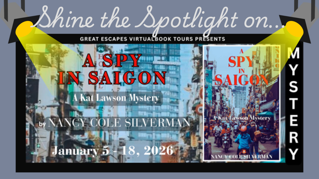 Welcome to my stop on the Great Escapes Virtual Book Tour for A Spy in Saigon: A Kat Lawson Mystery by Nancy Cole Silverman! Today we are featuring a spotlight of book four in this mystery series! Stop by each blog on the tour for interviews, guest posts, spotlights, reviews, and more! There is also a Giveaway for paperback (US only) and digital copies of the book! ENTER HERE! ⬅️