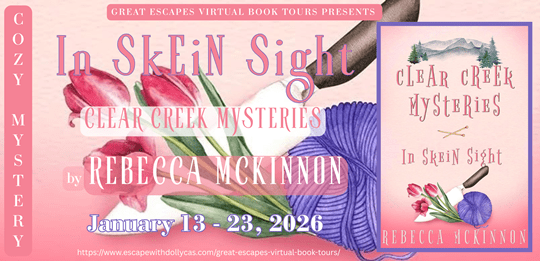 Welcome to my stop on the Great Escapes Virtual Book Tour for In Skein Sight (Clear Creek Mysteries) by Rebecca McKinnon! Today we are featuring a review of the fifth book in this cozy mystery series. Stop by each blog on the tour for interviews, guest posts, spotlights, reviews, and more! There is also a 🌟Giveaway🌟 for a $20 Amazon Gift Card! ENTER HERE! ⬅️