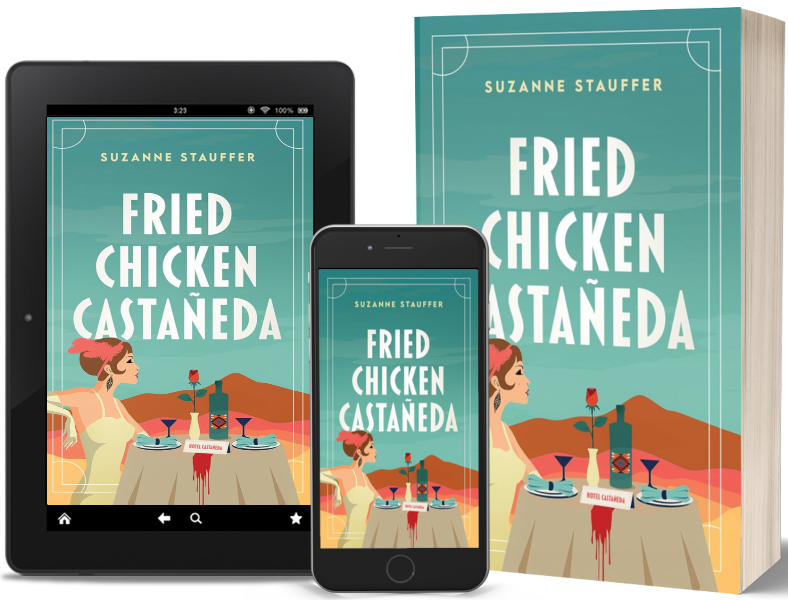 Welcome to my stop on the Great Escapes Virtual Book Tour for Fried Chicken Castañeda by Suzanne Stauffer! Today we are featuring a review of the first book in this cozy mystery series. At the Castañeda Hotel you’ll find romance, gourmet dining, bootleggers, and murder! Stop by each blog on the tour for interviews, guest posts, spotlights, reviews, and more! There is also a Giveaway for a copy of Fried Chicken Castañeda by Suzanne Stauffer, with bookmarks. ENTER HERE! ⬅️