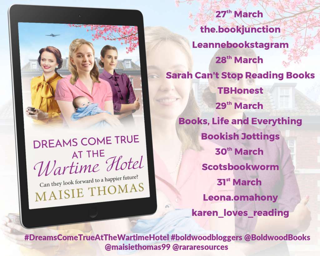 Welcome to my stop on Rachel’s Random Resources Book Tour for Dreams Come True at the Wartime Hotel by Maisie Thomas – the irresistible BRAND NEW addition to the uplifting ‘Wartime Hotel’ series.Â