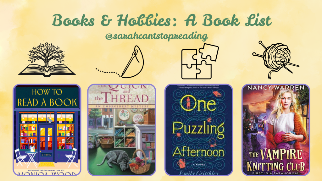 Years ago, I read a line in an obituary that read āshe cultivated a deep contentedness with her life.ā And since then, Iāve thought about that line frequently ā even putting it up by my computer. For me, hobbies add to my happiness and contentedness with life, so I thought it would be fun to make a booklist tying books to my favorite hobbies.